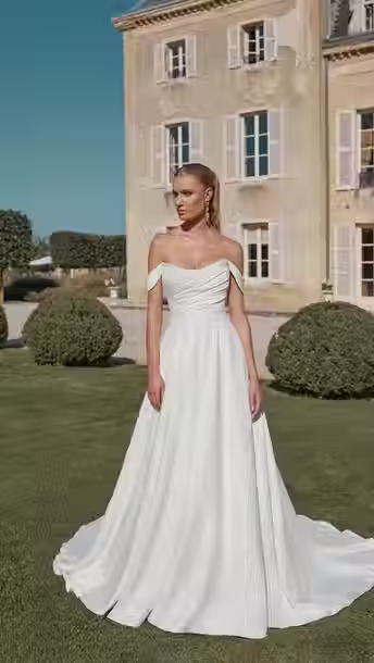 If there’s one style that never goes out of fashion, it’s the A-line wedding dress. Brides love it because it feels easy, comfortable, and beautiful all at once. The fitted top gives just the right amount of shape, while the skirt flows in a way that makes every step (and every spin on the dance floor) feel magical.