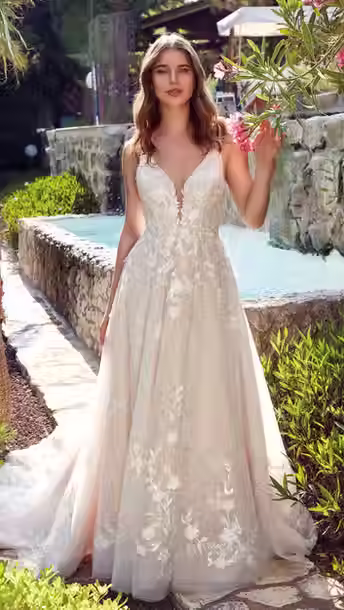 At Blush and Ivory in Coldwater, Michigan, we’ve chosen an A-line bridal gown collection that shows just how versatile this silhouette can be. From A-line wedding dresses with beading that sparkle in the light, to affordable A-line wedding dresses that fit beautifully within your budget, to A-line flowy wedding dresses that feel effortless and romantic—there’s a gown here for every love story.