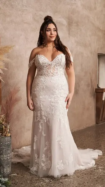An off-the-shoulder wedding dress has a way of making a bride feel instantly beautiful. The neckline frames your shoulders and collarbone in such a flattering way, creating a look that feels romantic, soft, and a little dramatic all at once. It is a classic style that brides continue to love year after year.